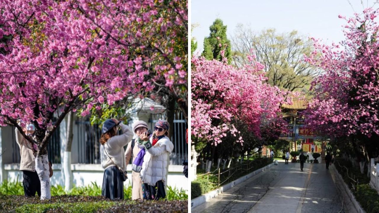Đến Côn Minh vào mùa Xuân, du khách sẽ được chứng kiến cảnh quan thần tiên khi hàng ngàn cây hoa Anh Đào nở rộ trên khắp thành phố. Những hàng cây hoa Anh Đào tạo nên những hình ảnh tuyệt đẹp, tạo nên một không gian mộng mơ và lãng mạn.