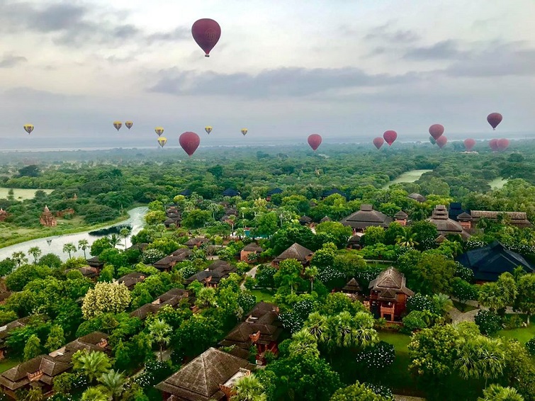 Một trong những sức hút của Bagan là hình ảnh khinh khí cầu bay lượn trên bầu trời tạo nên khung cảnh huy hoàng, tráng lệ hiếm thấy.