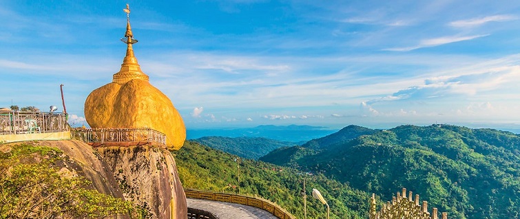 Nằm chênh vênh với diện tích tiếp xúc rất nhỏ bên vách núi, Golden Rock là hòn đá thiêng cất giữ sợi tóc của Đức Phật.