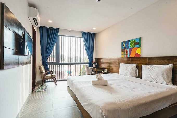 Khách sạn 2 sao tọa lạc tại trung tâm Côn Đảo có phong cách đơn giản, hiện đại. Mỗi phòng đều có cửa sổ lớn đón sáng, thông thoáng và đầy đủ tiện nghi như bàn làm việc, tủ quần áo, máy sấy tóc, ấm đun nước,…