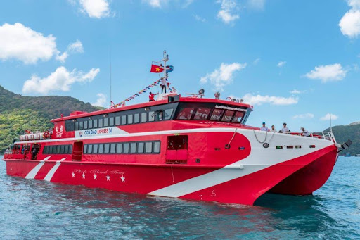 - Tàu Cao Tốc Express: Là Tàu 2 thân lớn nhất Việt Nam đến thời điểm hiện tại với sức chứa lên tới 600 khách. Thời gian di chuyển đến Côn Đảo khoảng 3 tiếng 30 phút. Giá vé ghế thường rẻ nhất là 610,000 VNĐ ngày thường, và ngày lễ là 690,000 VNĐ