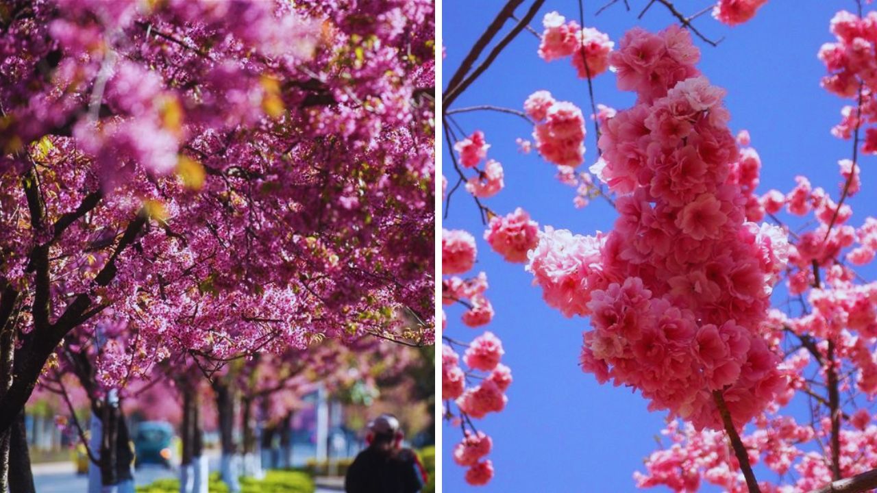 1. Sắc hồng tuyệt vời của hoa Anh Đào tại Côn Minh