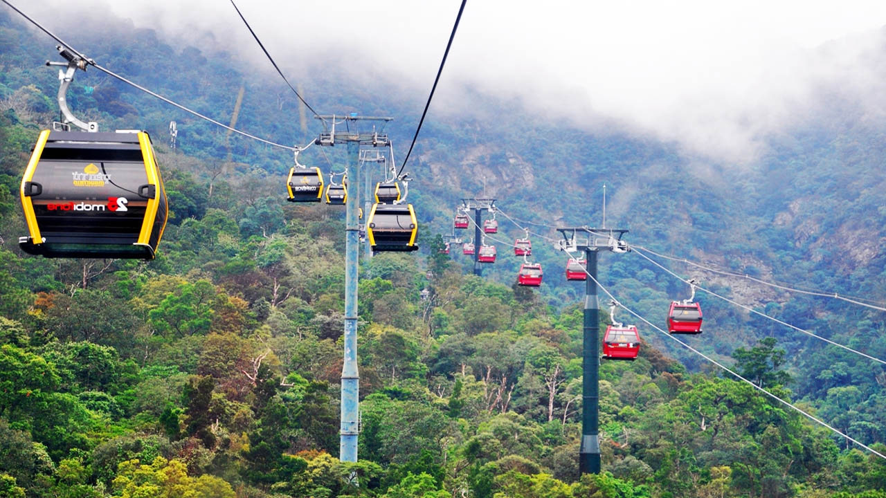 Bước lên cáp treo và gondola, du khách sẽ được đưa vào một thế giới đẹp tự nhiên tuyệt vời, nơi có tầm nhìn mở ra trước mắt họ là những cảnh đẹp hùng vĩ của thiên nhiên. Cảm giác đắm chìm trong khung cảnh không gian xanh mướt và dãy núi trùng điệp là không gì sánh kịp.