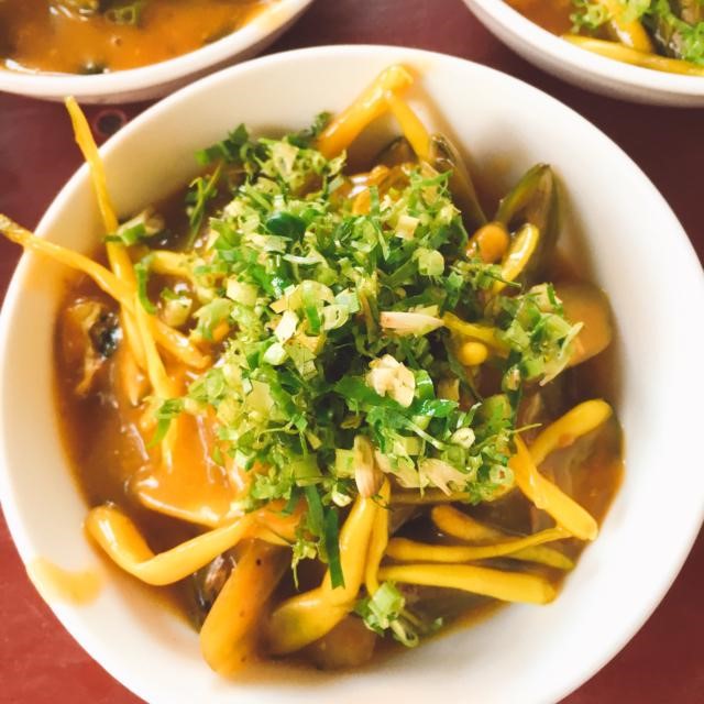 Những con giá bể được xào trong nước sốt sền sệt, nổi bật trong màu vàng tươi của nghệ, ăn dai dai sần sần rất lạ miệng. Ai thích ăn cay thì có thể cho thêm một ít ớt cho đủ vị. Mỗi bát giá bể xào có giá 10k, vừa nhẹ tiền vừa nhẹ bụng để dành thưởng những món ăn vặt khác.