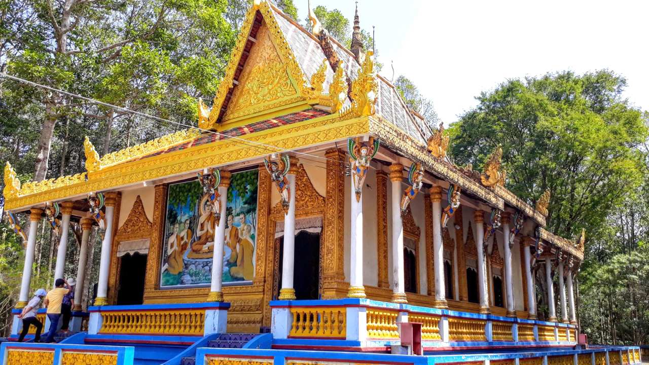 Chùa Som Rong cũng có Chánh Điện được xây dựng vô cùng đẹp mắt. Tuy nhiên, công trình gây ấn tượng mạnh mẽ với khách du lịch ở chùa Som Rong lại là ngôi Bảo Tháp được chạm khắc vô cùng tinh xảo phỏng theo những tòa tháp Khmer cổ của người Thái. Đứng check – in bên ngôi Bảo Tháp của chùa Som Rong, du khách nào cũng ngỡ như mình đang đi du lịch Thái Lan vậy.
